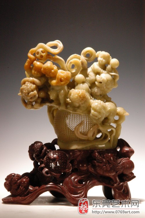 张爱廷,男,浙江青田人,生于1939年。1957年开始从事青田石雕,先后任青田石雕厂创作组组长、厂长。1958年至于1960年以优异成绩读于浙江美术学院(现中国美术学院)民间工艺美术系。1967年至1968年作为专家被国家派遣赴阿尔巴尼亚传授石雕技艺。1957年经浙江美术学院邀请在该院雕塑系任教一年。1988年被评为“高级工艺美术师”。1989年赴日本作技术交流和表演。1991年被浙江省人民政府授予“浙江省工艺美术大师”荣誉称号。1993年被国家轻工部授予“中国工艺美术大师”的荣誉称号。四十多年来,张爱廷大师挚爱青田石雕艺术,潜心于人物、山水、花鸟和动物的创作,造诣颇深。特别是在人物创作上,鉴古通今,融贯中外,独辟蹊经,意蕴深厚,形神臻于完美,为工艺美术界所推崇。1965年与中国工艺美术大师周百琦合作的“满载送市场”在《人民画报》上刊登。1984年作品《寿星》刊登于《中国工艺美术》一书外文版。1987年作品《舞狮》被国家工艺美术珍宝馆收藏。1992年作品《连年有余》入选国家邮电部发行的青田石雕特种邮票。1996年作品《民族英雄陈化成抗英》被上海华烈士陵园收藏陈列,八件作品在第一届世博会上获奖。2001年作品《喜悦》在中国国石精品展评中获特等奖。2003年作品《田园欢歌》在中国国石精品展中获金奖。1997年中央电视台对张爱廷进行了采访,并于同年4月2日在中央电视台东方时空栏目中播出专题节目“东方之子——张爱廷”。